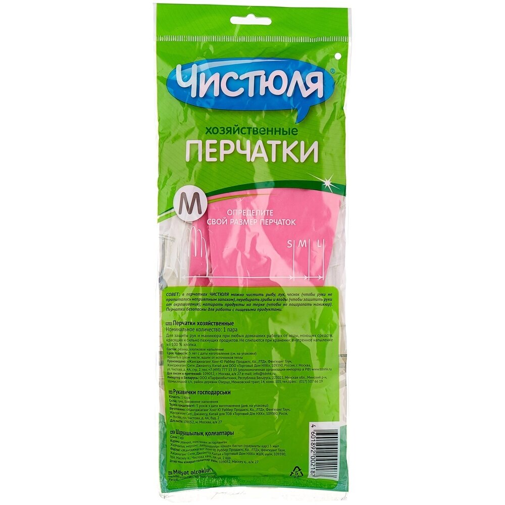 Чистюля перчатки хозяйственные M(8) из латекса с хлопковым напылением