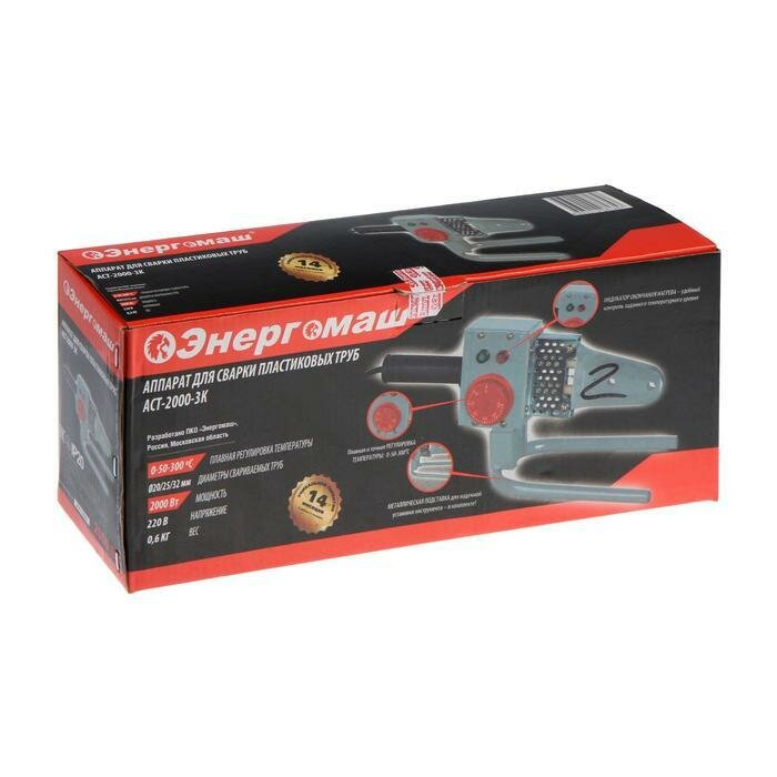 Аппарат для сварки пластиковых труб Энергомаш АСТ-2000-3К, 2000Bт, 3 насадки 20-25-32мм, 1 шт