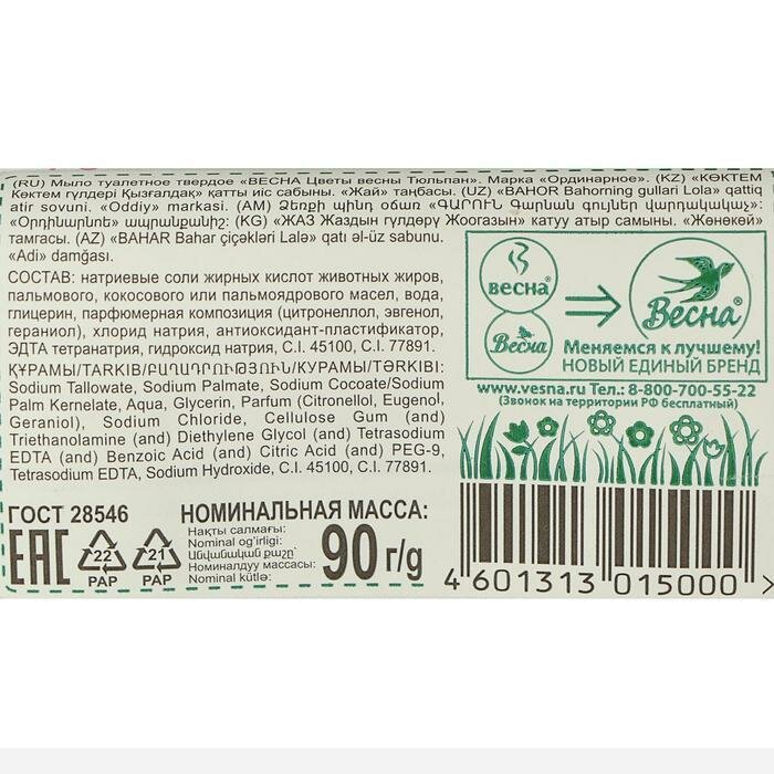 Мыло твёрдое весна Цветы весны 90г Тюльпан интересное: