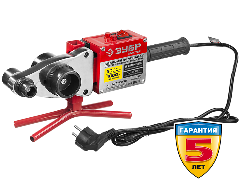 ЗУБР 2000 Вт, муфтовый (раструбный), мечевидный, сварочный аппарат для полипропиленовых труб АСТ-2000