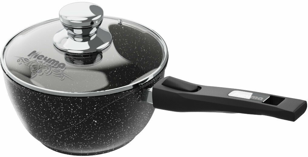 Ковш "Мечта" 1.2л Гранит с антипригарным покрытием со съемной ручкой и крышкой, можно мыть в посудомоечной машине