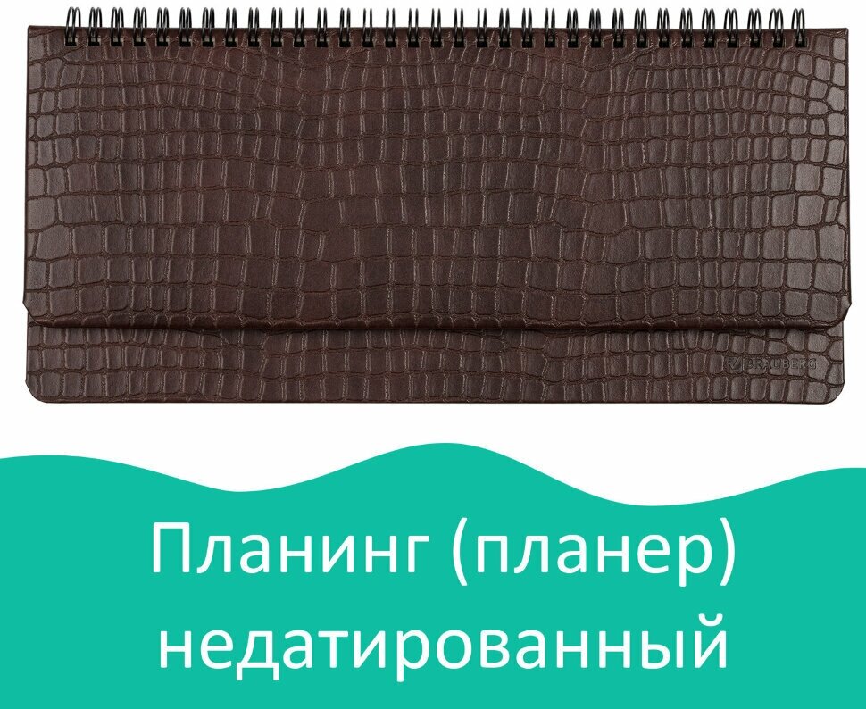 Планинг настольный BRAUBERG недатированный, 305х140 мм, Alligator, под матовую кожу крок, 60 л., т.-корич, крем. блок, 125880