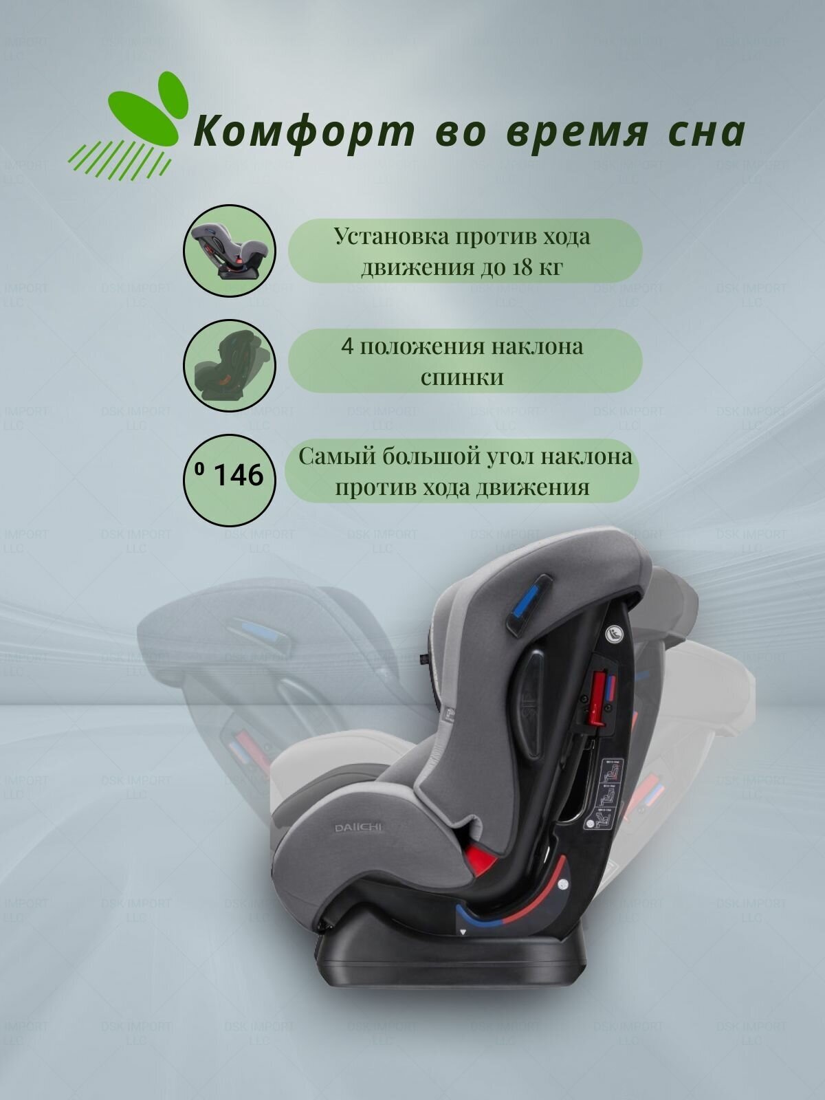 Автомобильное кресло DAIICHI™ First 7 Plus, цвет Grey, арт. DIC-3115FIX (основание ISOFIX в комплекте)