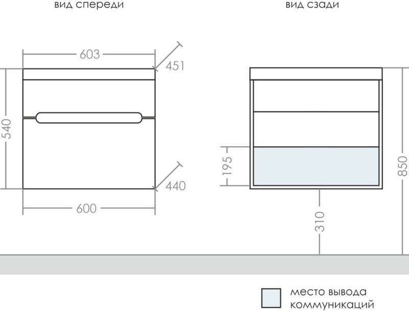 Тумба подвесная Лондон 60 2 ящика под умывальник Фостер 60