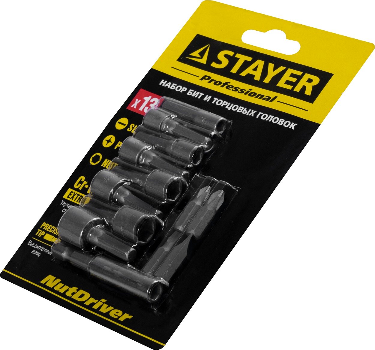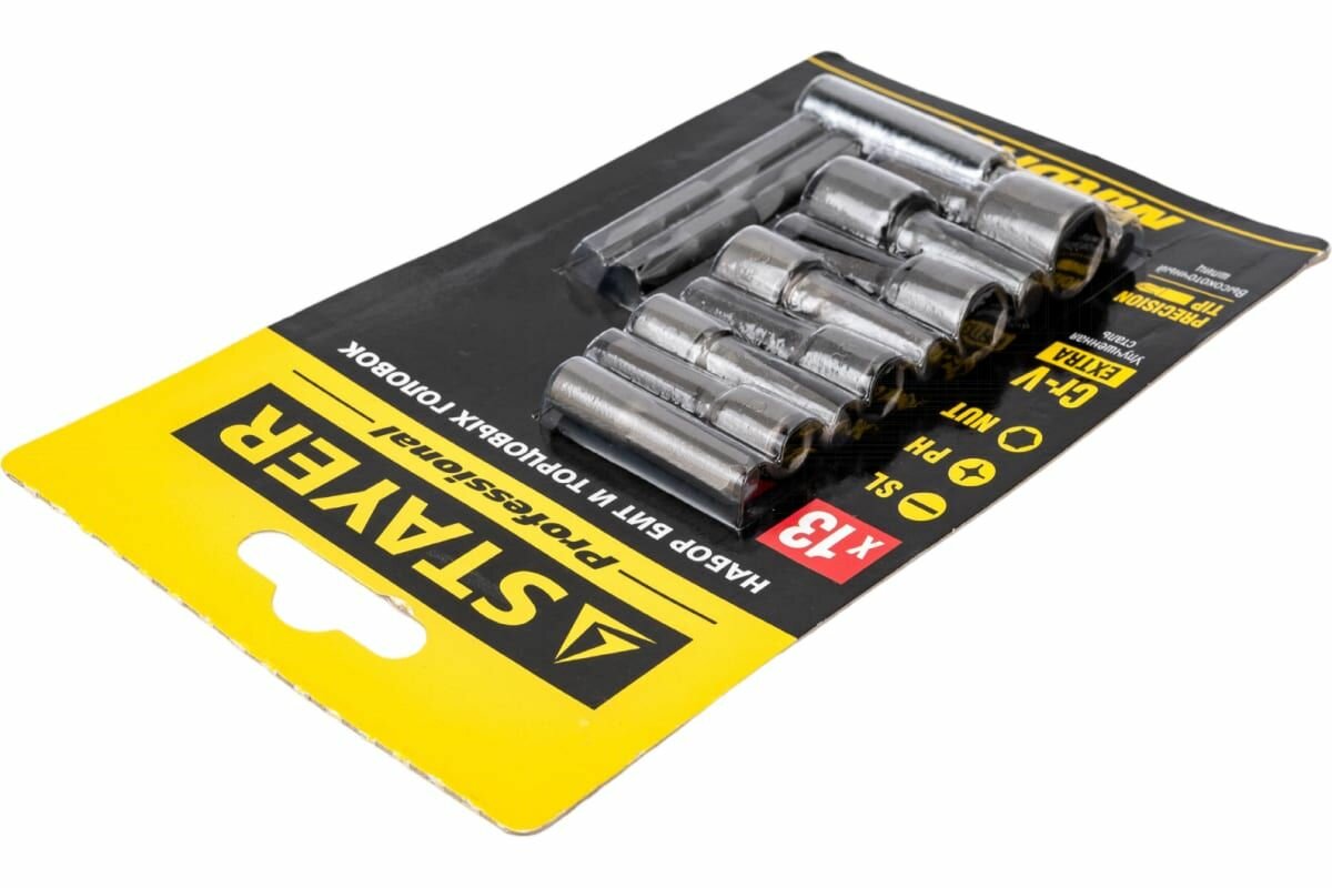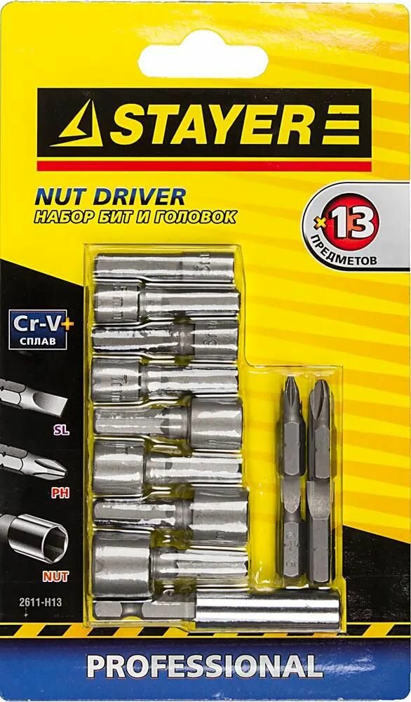 Набор бит и торцовых головок STAYER 13 шт., Cr-V