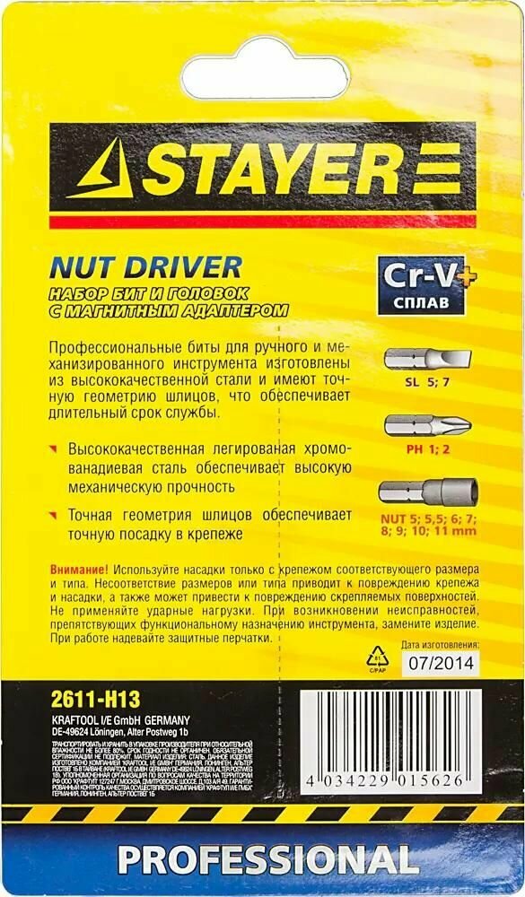 Набор STAYER ″PROFI″ Биты с магнитным адаптером и торцевыми головками, 13 предметов