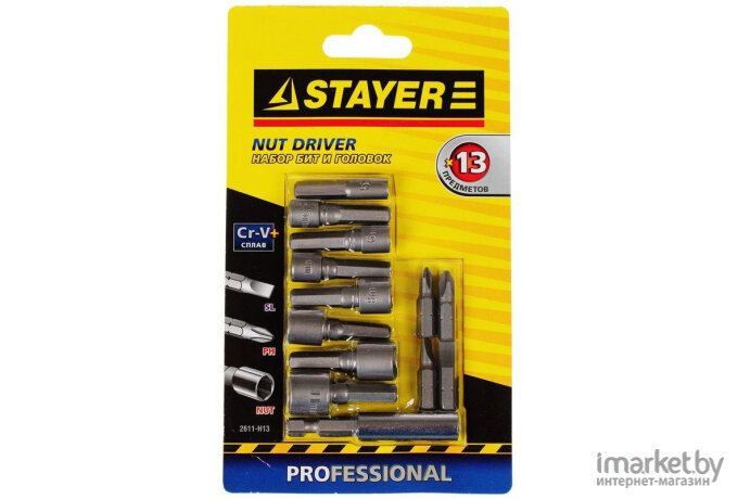 Набор бит и торцевых головок STAYER 13 шт. ( 2611-H13 )