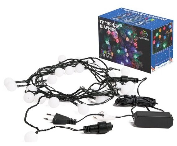 Электрогирлянда Neon-night Шарики, 25 LED ламп, 5 м, d 25 мм, многоцветная