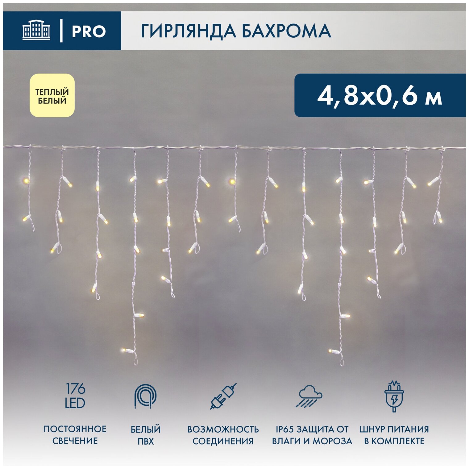 Neon-Night Гирлянда Айсикл бахрома, 4,8x0,6 м, белый Пвх, 176 LED Тепло-белые 255-138 .