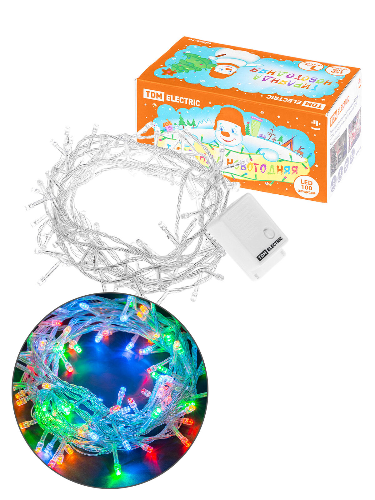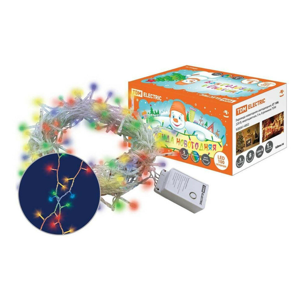 Гирлянда TDM ELECTRIC СГ100, 5 м, 100 ламп, разноцветные диоды/зеленый провод
