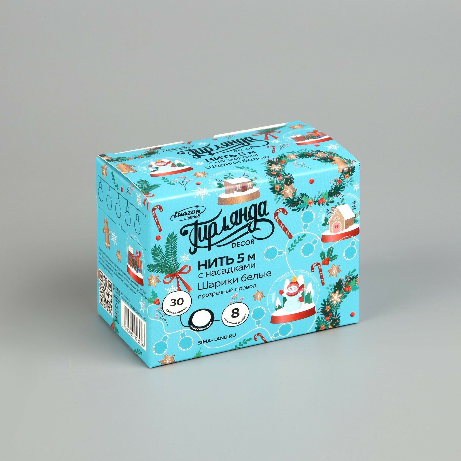 Купить Luazon Lighting Гирлянда "Нить" 5 м с насадками "Шарики белые", IP20, прозрачная нить, 30 LED, свечение белое, 8 режимов, 220 В