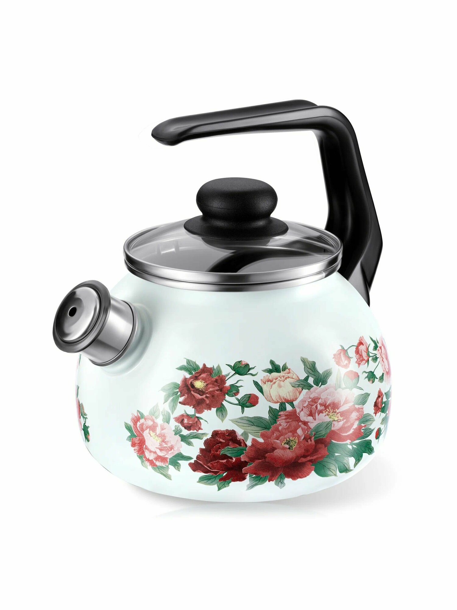 Чайник СтальЭмаль Весенний романс 2л эмалированный, со свистком
