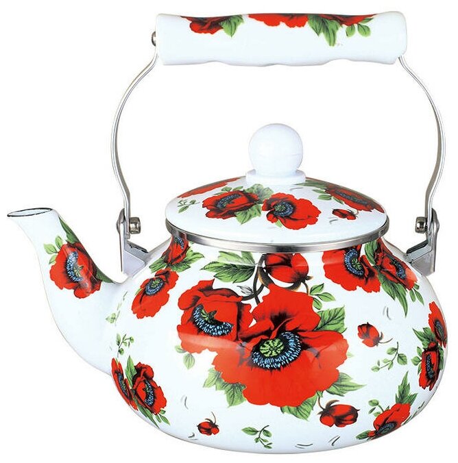 (1 шт.) Чайник эмаль 2.5л Маковый цвет керамическая ручка