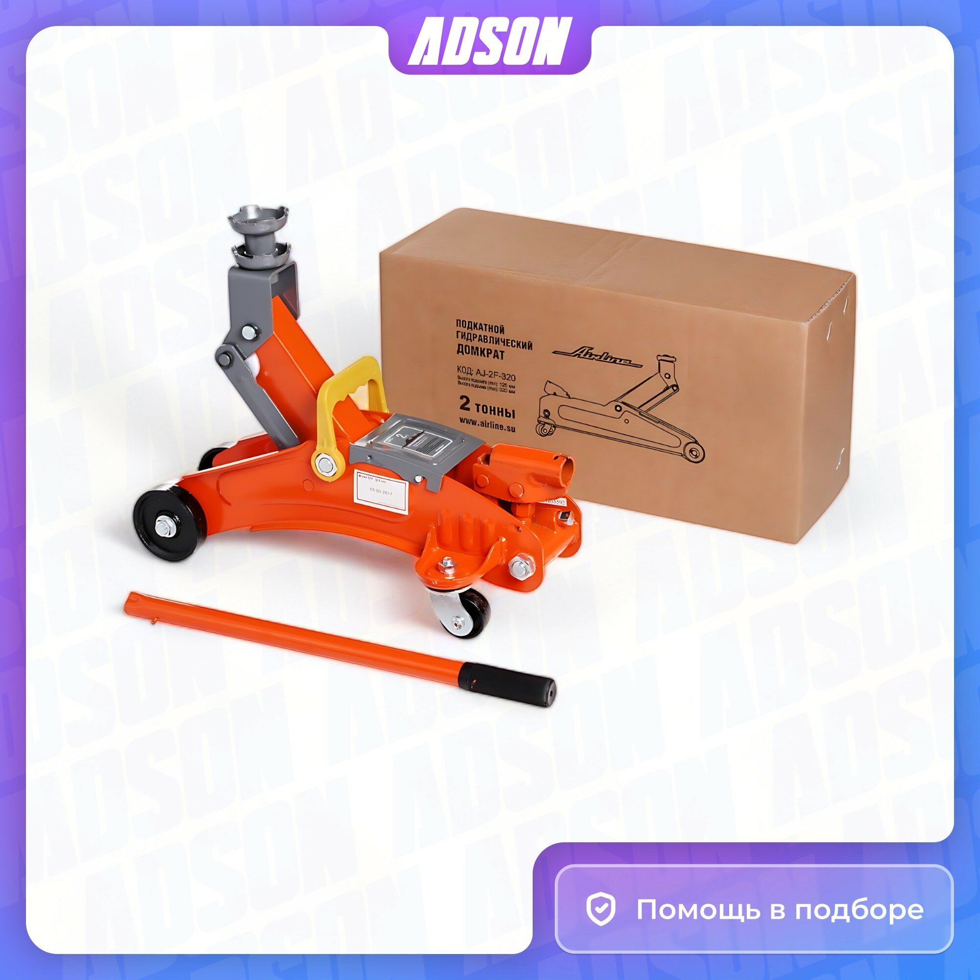 Домкрат Подкатной 2т (Min - 125 Мм, Max - 320 Мм) AIRLINE арт. AJ2F320