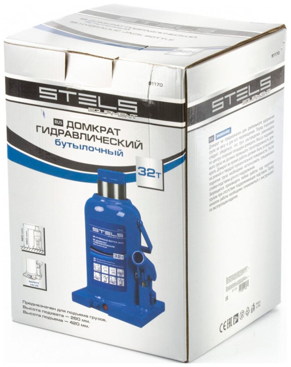 STELS 51170 Домкрат гидравлический бутылочный, 32 т, h подъема 260-420 мм Stels 51170 STELS 51170