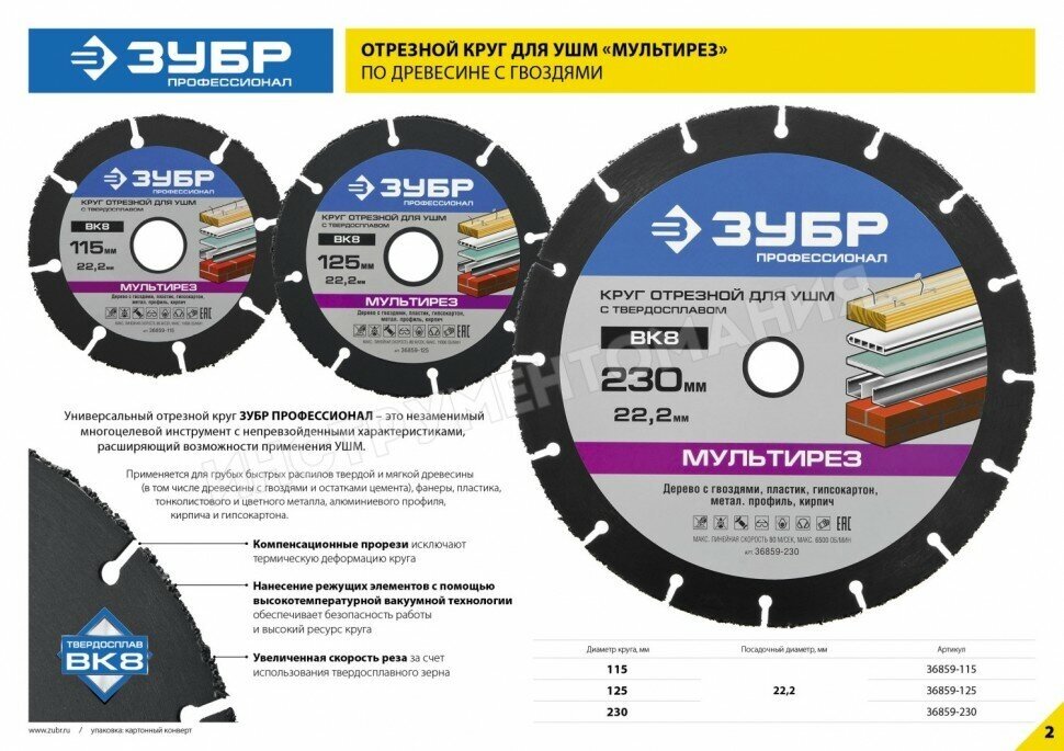 Отрезной круг Зубр 36859-115 "мультирез-вк8" для Ушм, 115х22,2мм, .