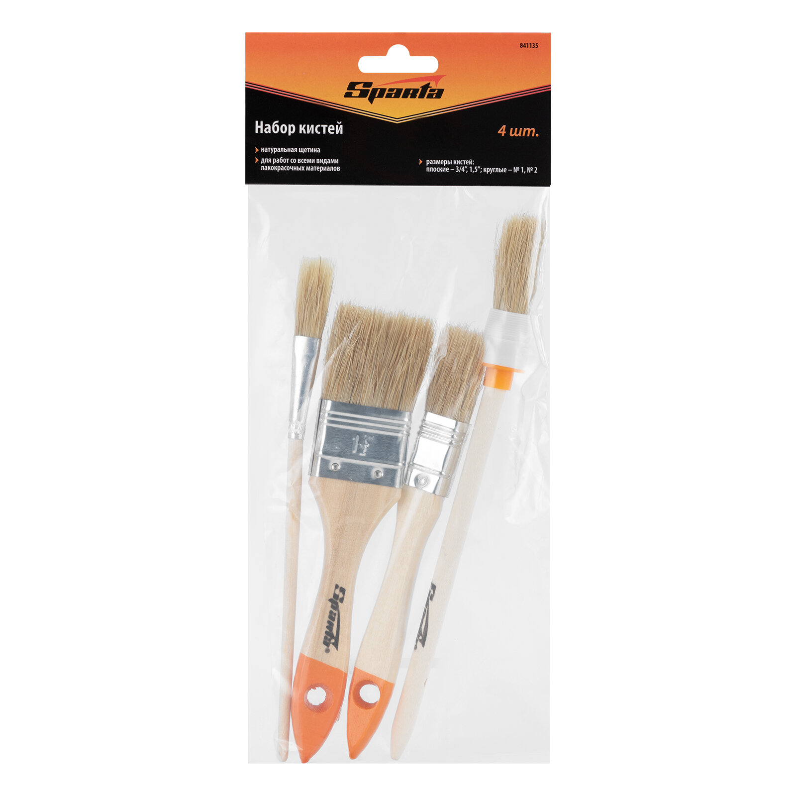 Набор кистей, 4 шт, плоские 3/4", 1/5"; круглые №1, №2 SPARTA 841135