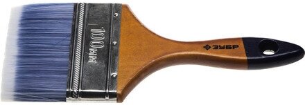 Малярная плоская кисть ЗУБР Аква 100 мм 4 искусственная светлая щетина деревянная ручка (4-01007-100)