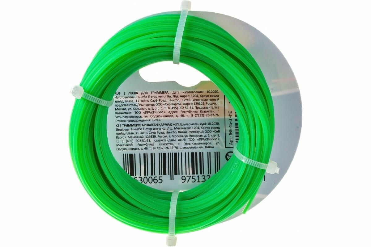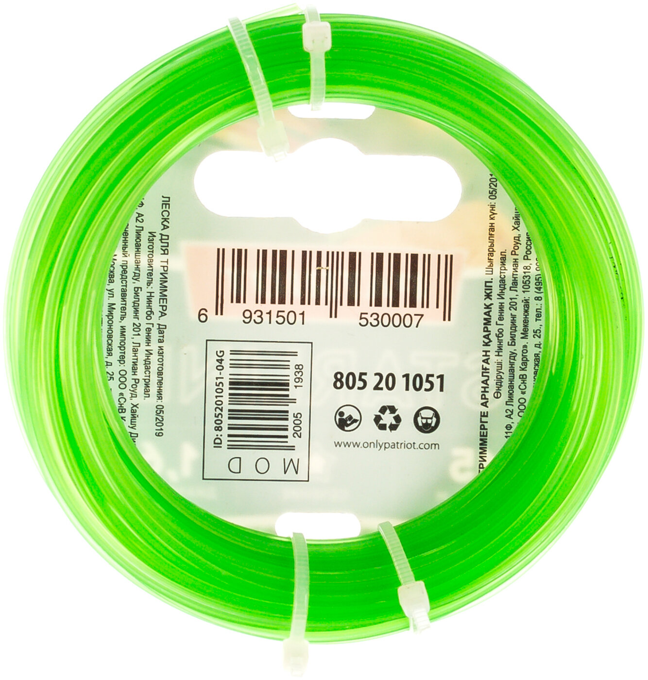 PATRIOT 805201051 D 1,6 мм L 15 м (звезда, зеленая) Леска Standart для триммеров