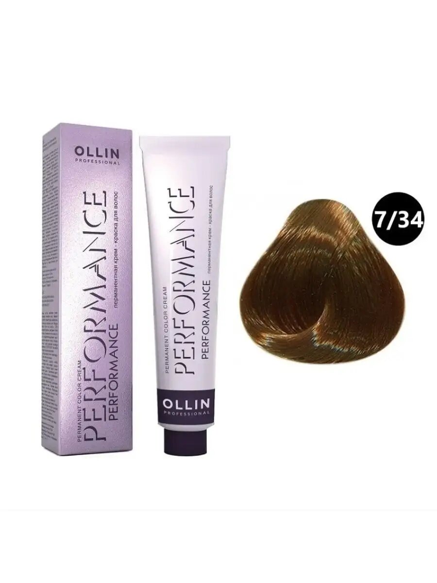 Купить OLLIN Professional Performance перманентная крем-краска для волос, 7/34 русый золотисто-медный, 60 мл
