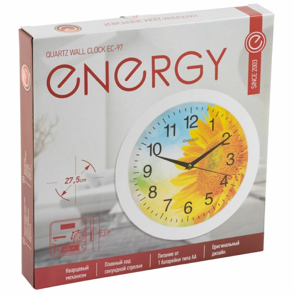 Часы настенные Energy EC-97 подсолнух, 1хАА .