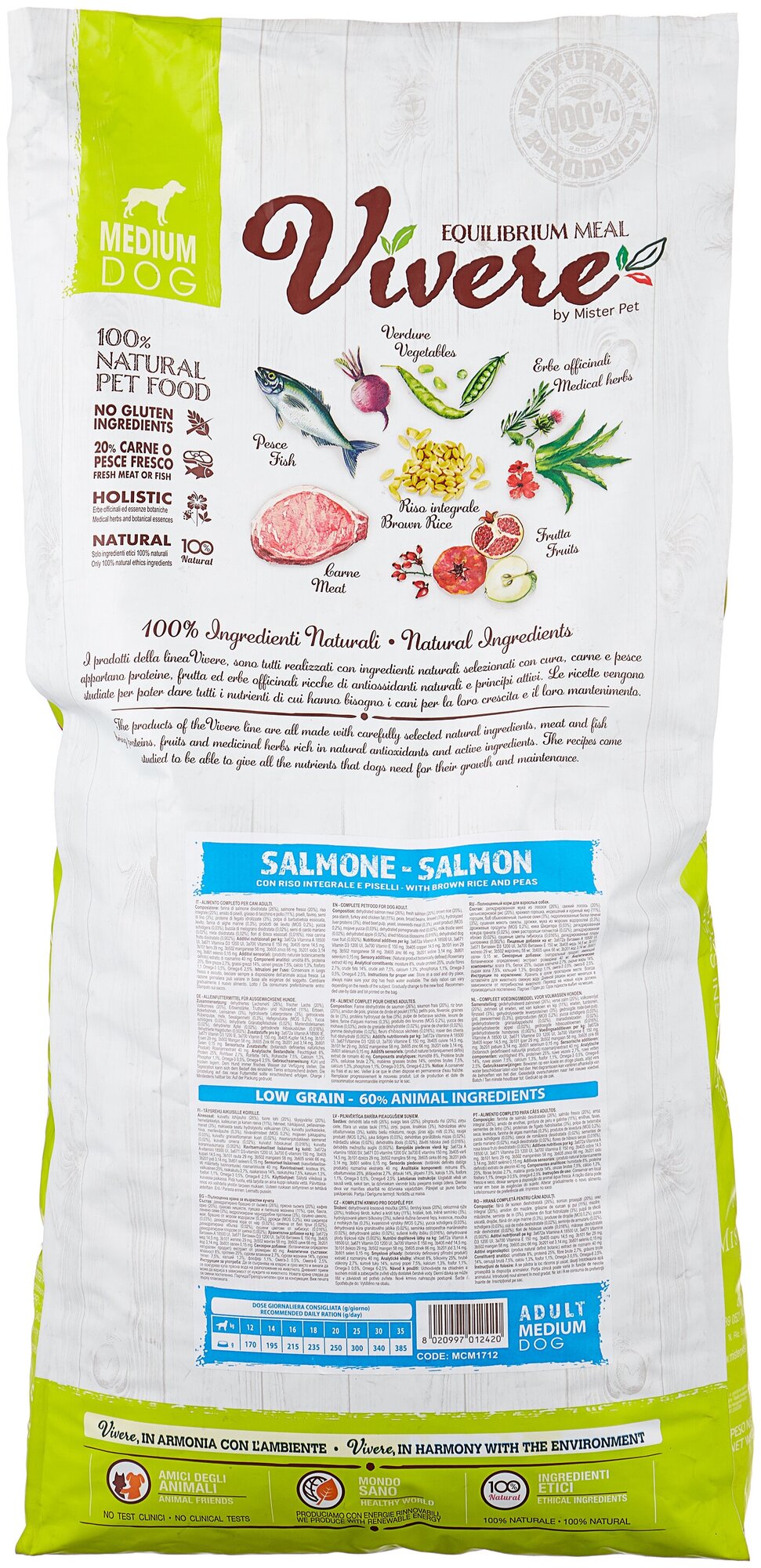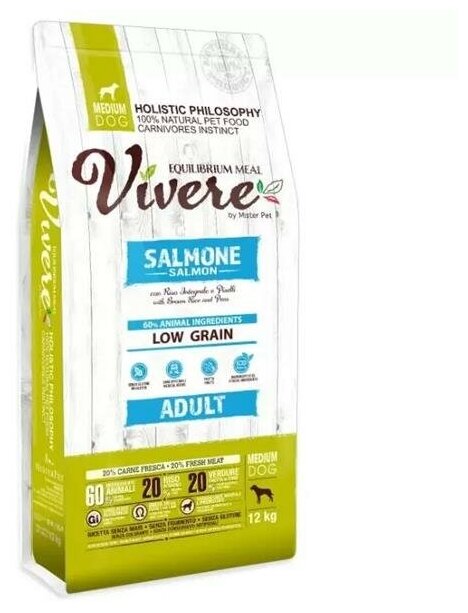 VIVERE LOW GRAIN ADULT MEDIUM SALMON низкозерновой для взрослых собак средних пород с лососем (12 кг)