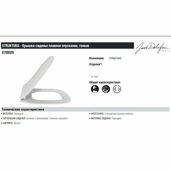 Сиденье для унитаза Jacob Delafon Struktura, арт. E70025-00, термодюр, с микролифтом, тонкое