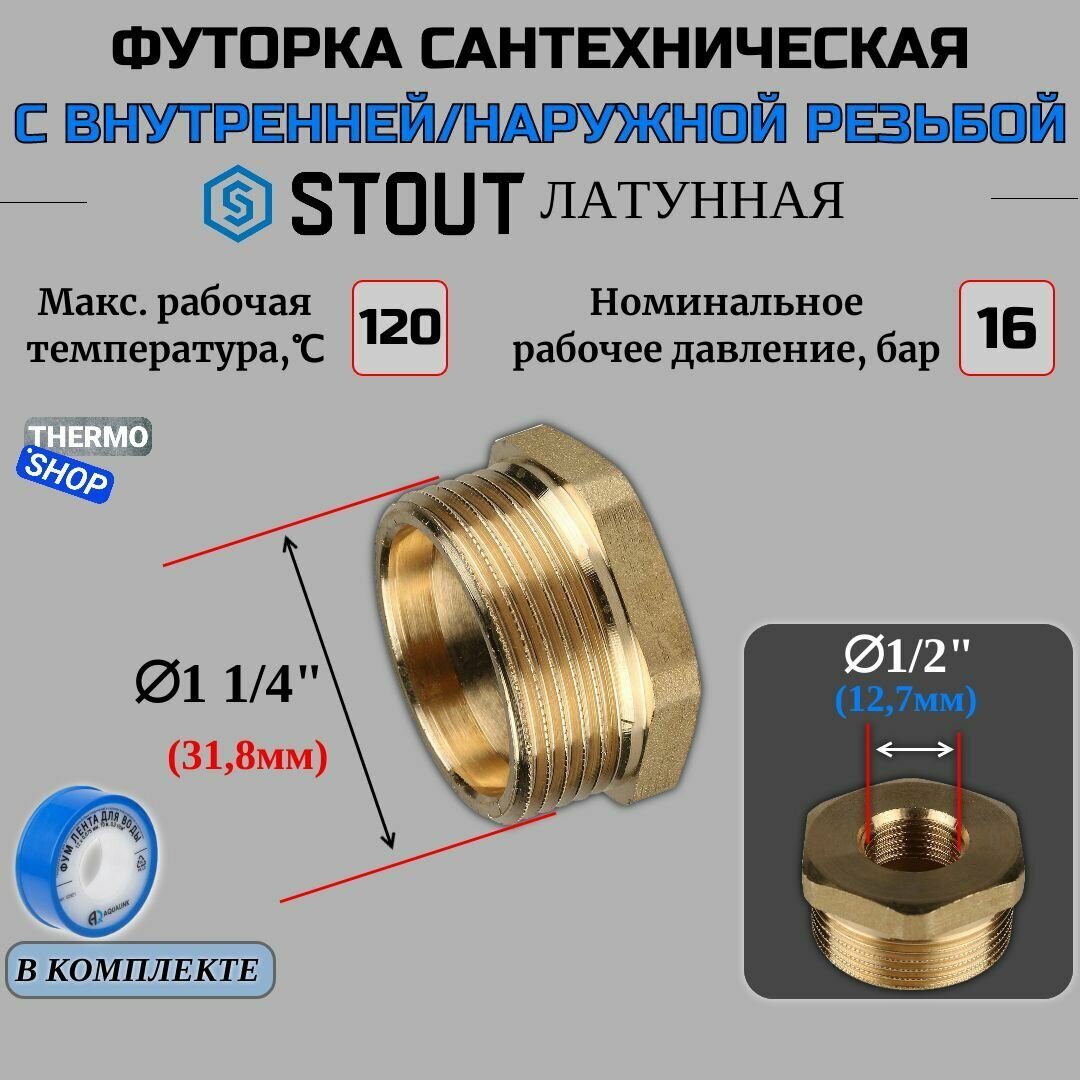 Футорка латунная 1 1/4"НРх1/2"ВР, Stout SFT-0028-011412