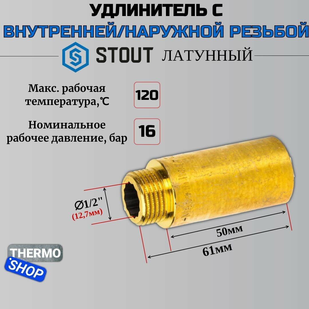 Удлинитель латунный 1/2" НР-ВР 50 мм, Stout SFT-0001-001250