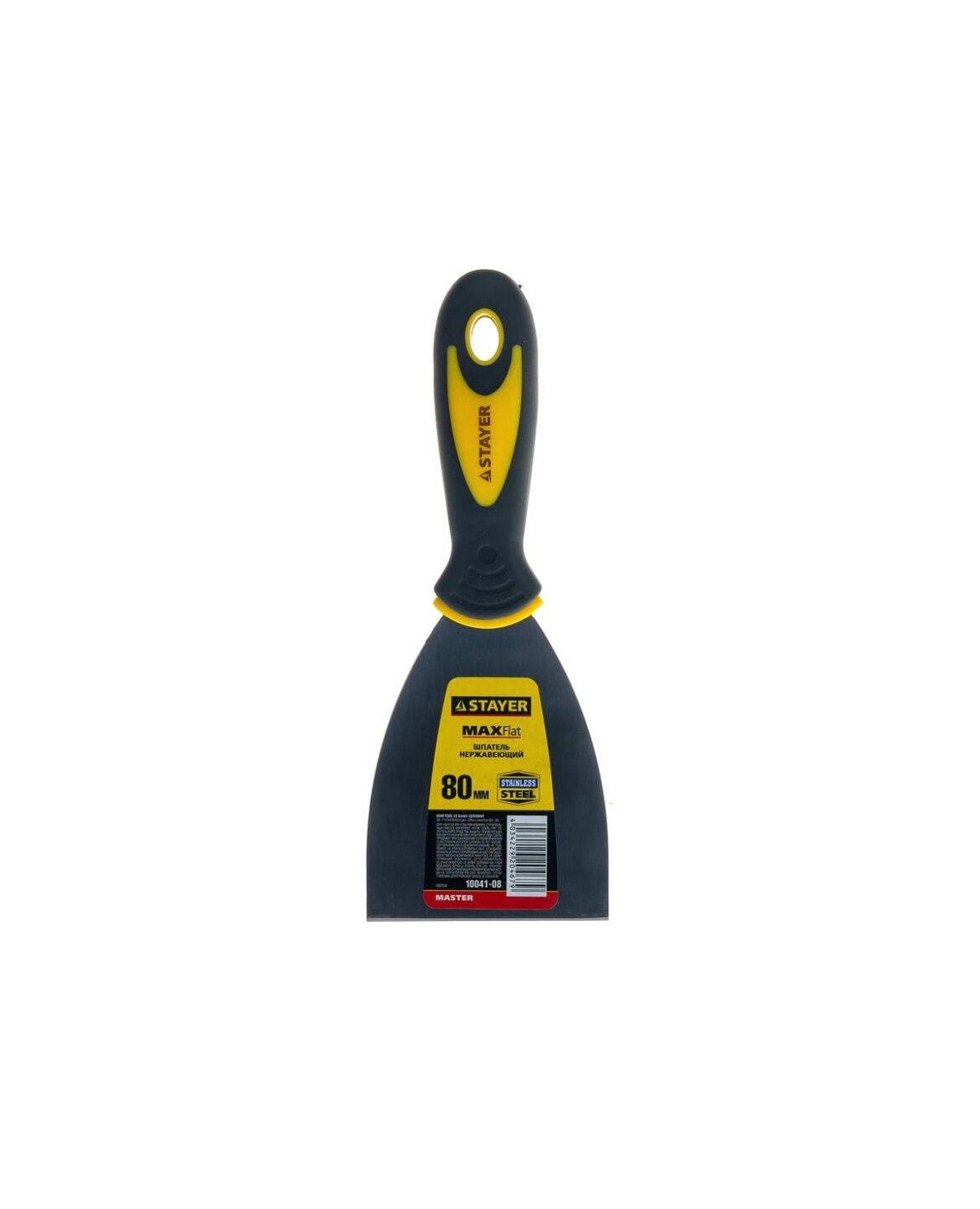 STAYER MaxFlat 80 мм, профилированное полотно двухкомпонентная ручка, нержавеющий, Шпатель, MASTER (10041-08)
