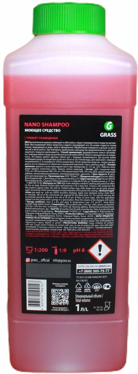 GRASS 136101 Автошампунь Nano Shampoo универсальный 1л GRASS 136101 1шт