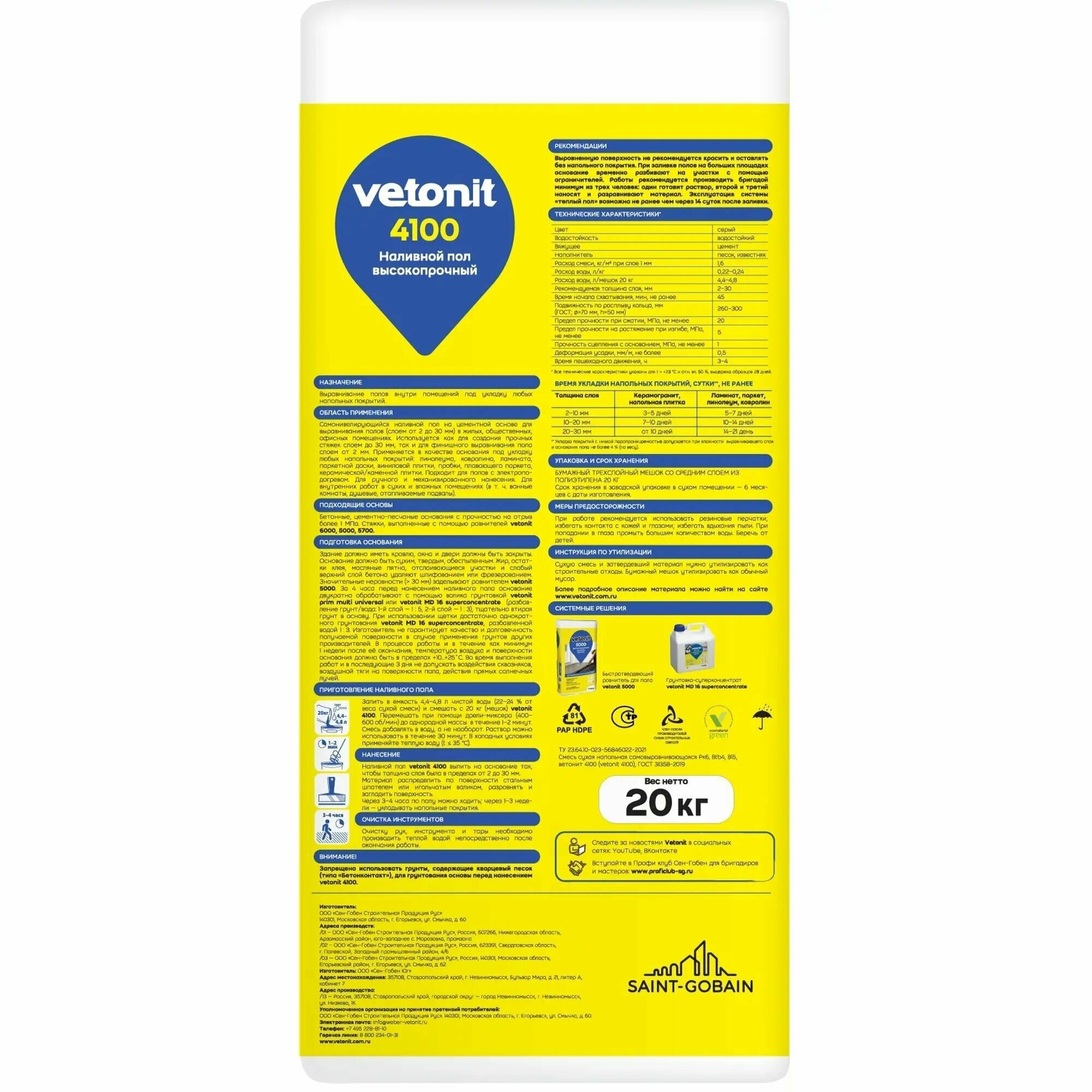 Вебер.ветонит 4100 наливной пол высокопрочный (20кг) / Weber.vetonit 4100 наливной пол высокопрочный (20кг)