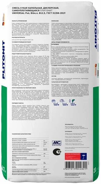 Плитонит Юниверсал наливной пол универсальный самовыравнивающийся 20 кг/Plitonit