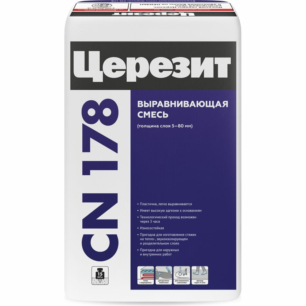 Ниже Вы можете прочитать отзывы на Выравнивающая смесь для пола Ceresit CN 178, 25 кг, ознакомится с подробными характеристиками, посмотреть интересные обзоры и фотографии на Выравнивающая смесь для пола Ceresit CN 178, 25 кг.