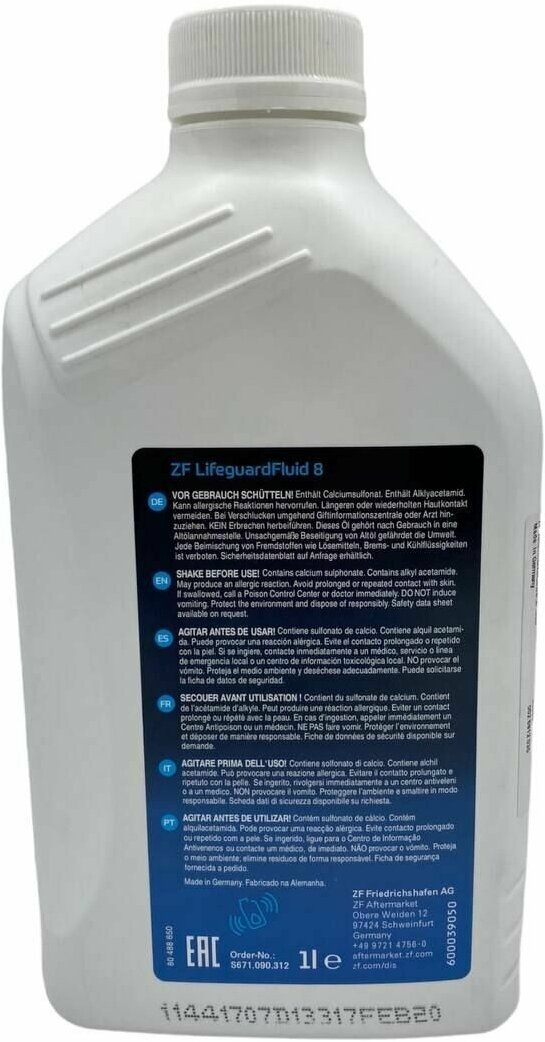 5l Lifeguardfluid 8 Масло Трансмиссионное ZF арт. S671090314