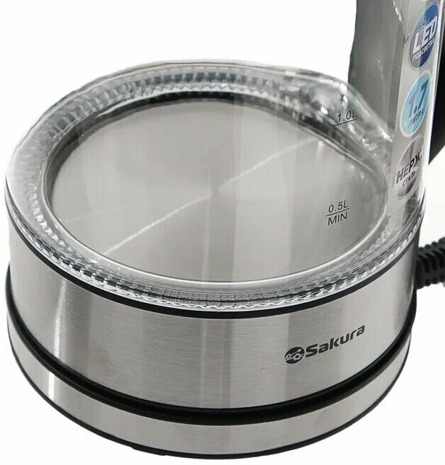SAKURA Чайник электрический Sakura SA-2720SBK, стекло, 1.7 л, 2200 Вт, серебристый