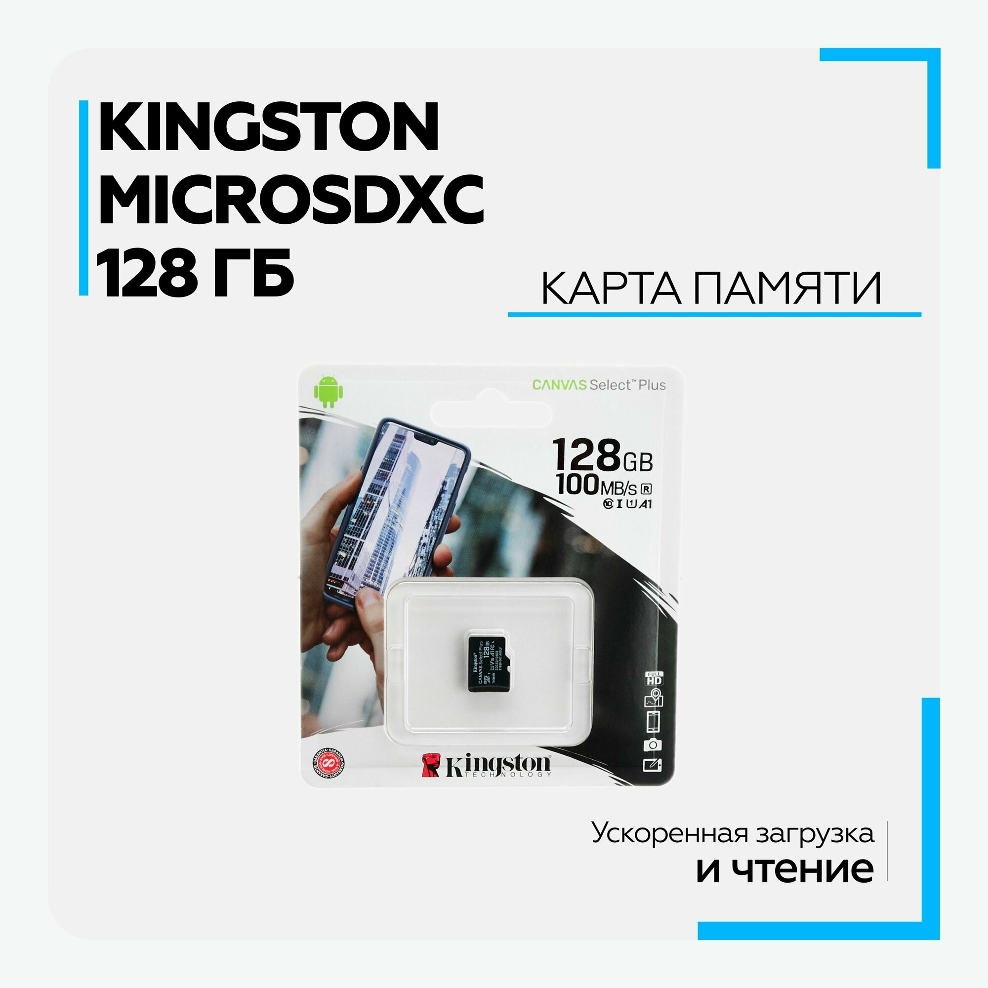 Карта памяти Kingston microSDXC 128 GB Canvas Plus UHS-I U1, 100 Мб, с, class 10 (SDCS2/128GBSP)