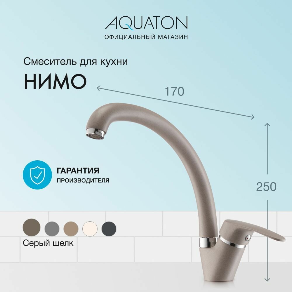 Смеситель AQUATON Нимо 1AX002FCXX250 для мойки, однорычажный, цвет: серый шелк