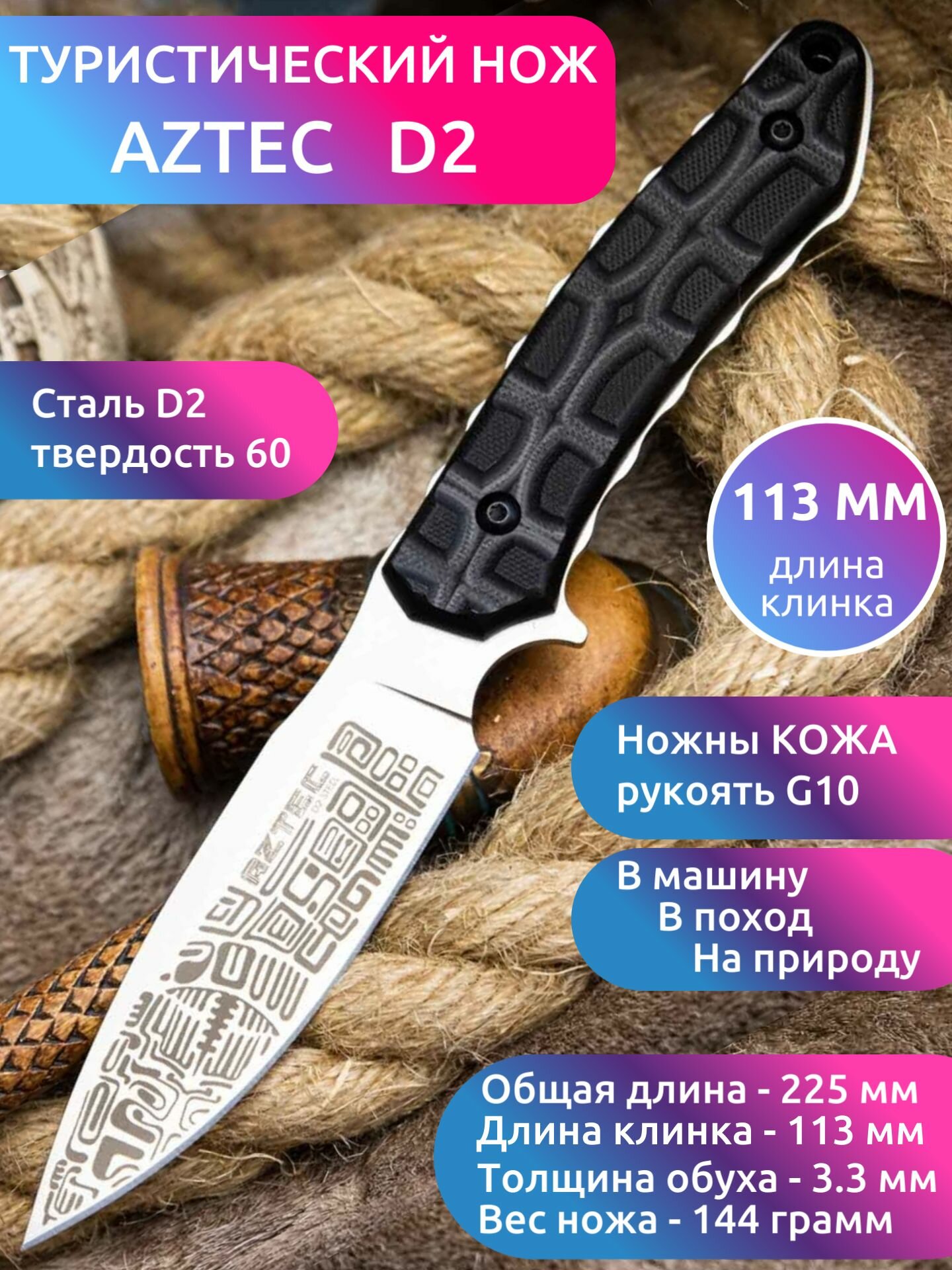Нож туристический Aztec D2 интересное: