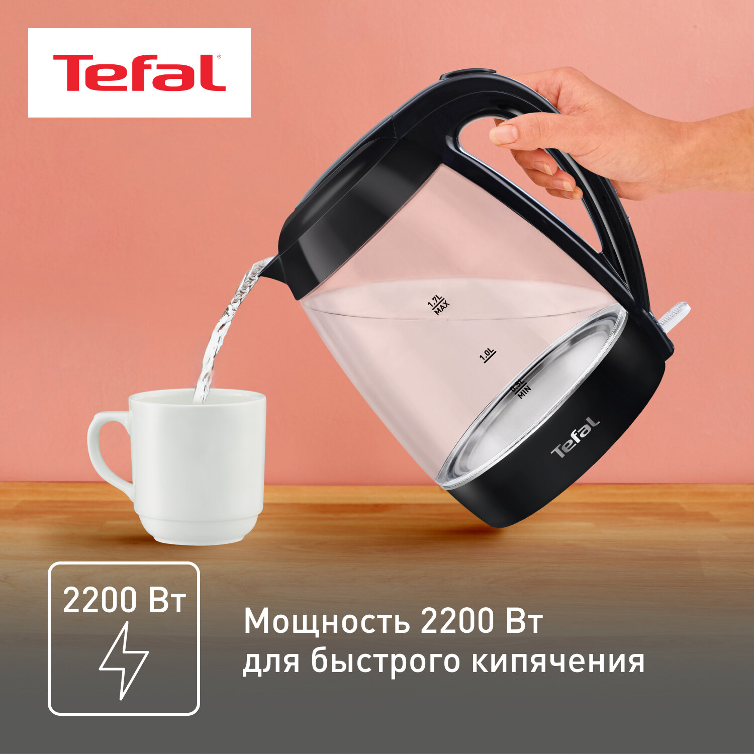 Tefal Чайник электрический TEFAL KO450832, стекло, 1.7 л, 2400 Вт, чёрный