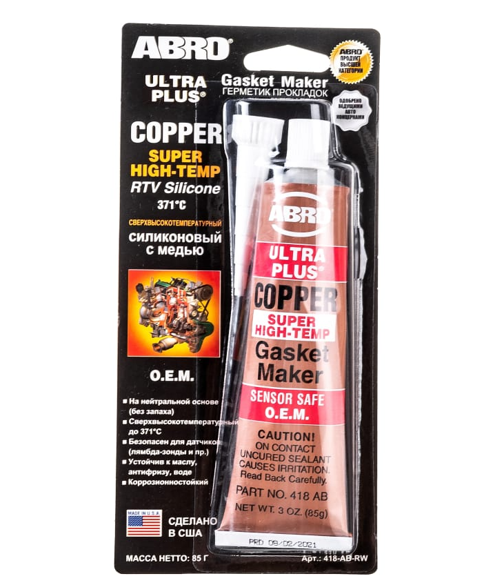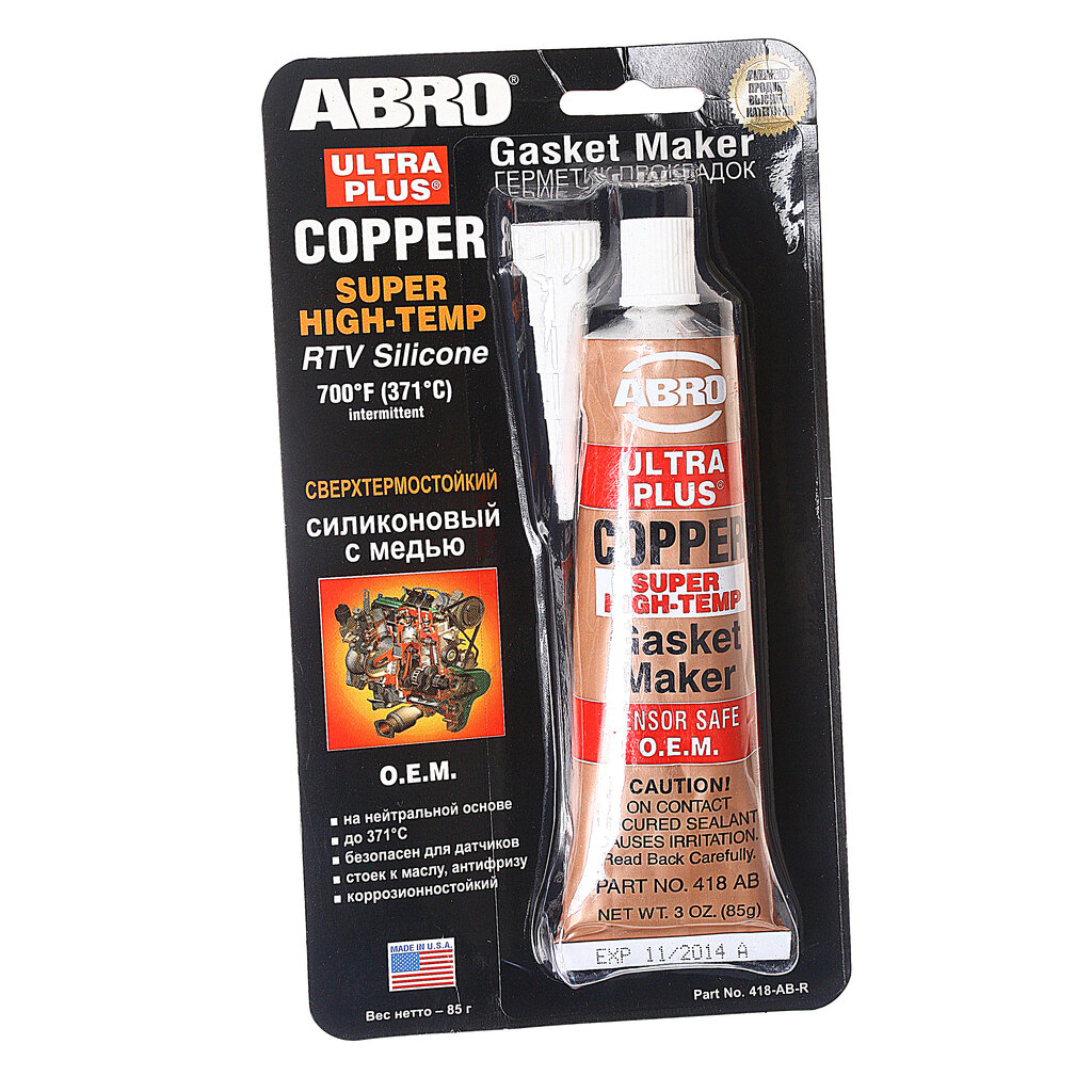 Герметик для ремонта автомобиля ABRO силиконовый 418-AB-R прокладок O.E.M. высокотемпературный, медный , 85 гр