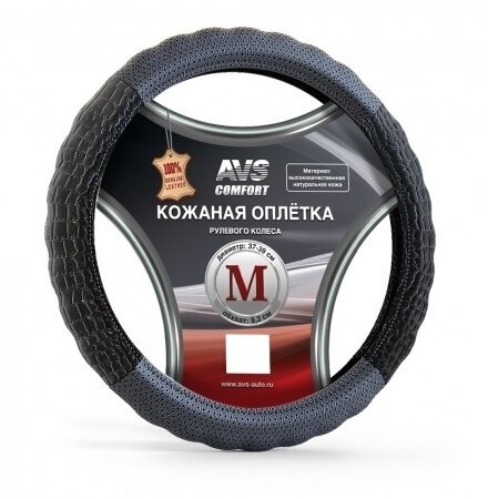 Оплетка на руль AVS GL-940M-B, натуральная кожа, размер M, черный AVS 3330129 .