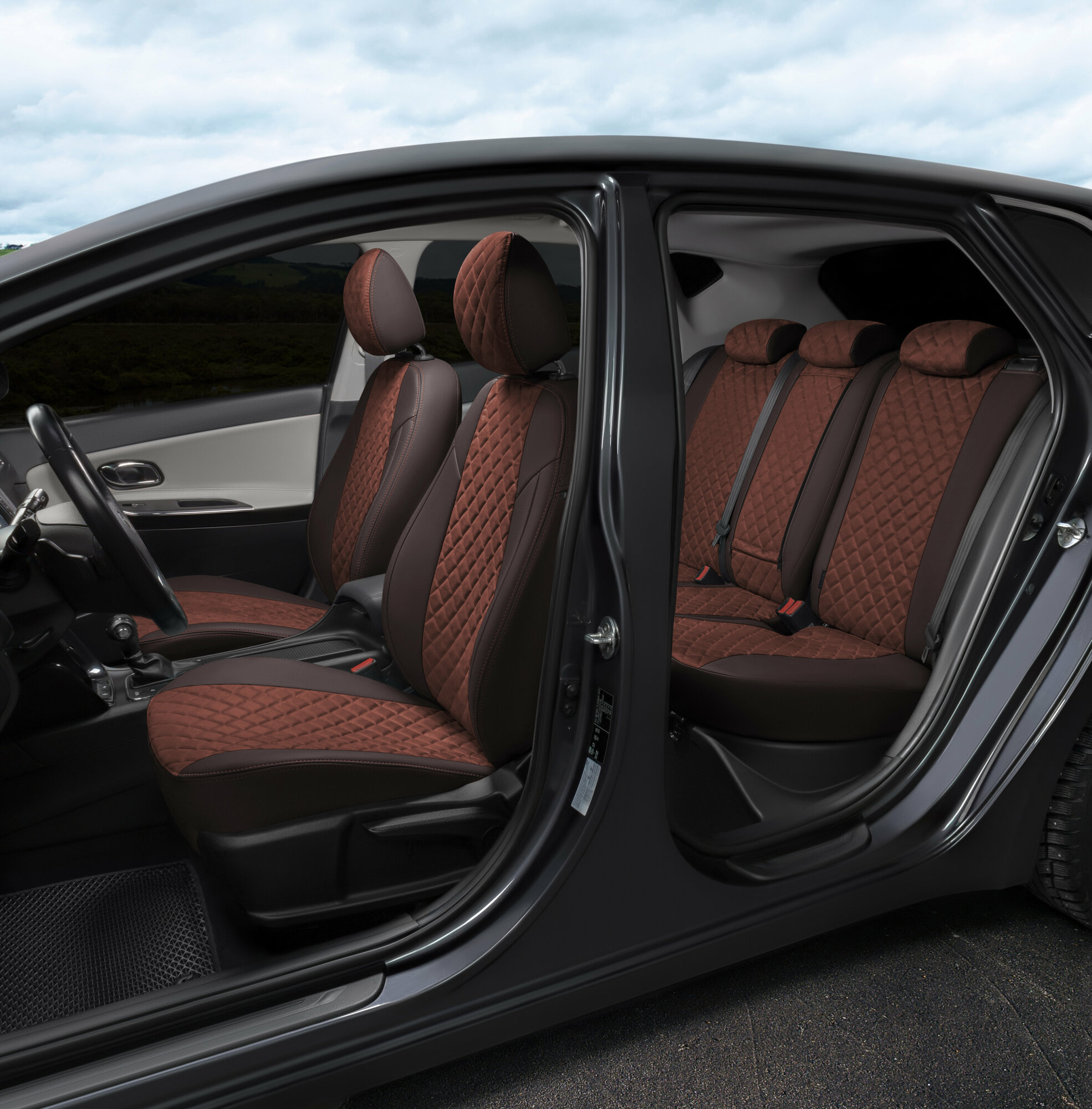 Комплект чехлов Автопилот Алькантара ромб Hyundai Solaris I Sd / KIA Rio III (40/60) с 10-17г. Коричневый +