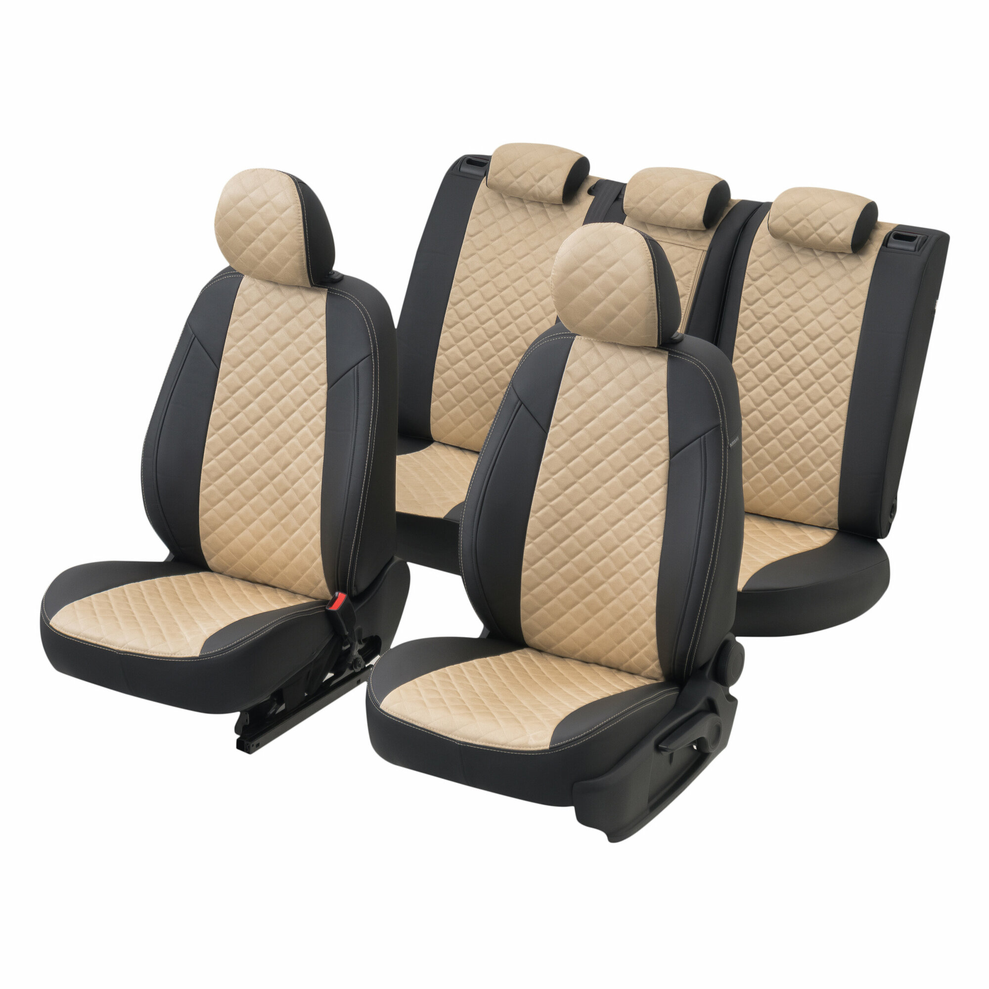 Комплект чехлов Автопилот Алькантара ромб Hyundai Solaris I Sd / KIA Rio III Sd (40/60) с 10-17г. Бежевый + Бежевый