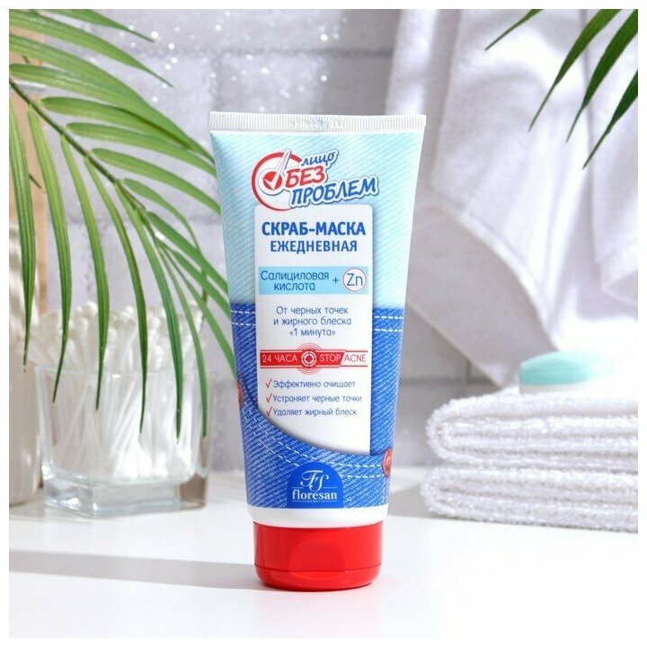 Floresan "Лицо без проблем"Скраб-маска ежедневная от черных точек и жирного блеска"1 минута", 150мл * 3шт