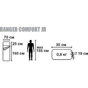 Спальный мешок Jungle Camp Ranger Comfort JR, с подголовником, левая молния, цвет: зеленый интересное: