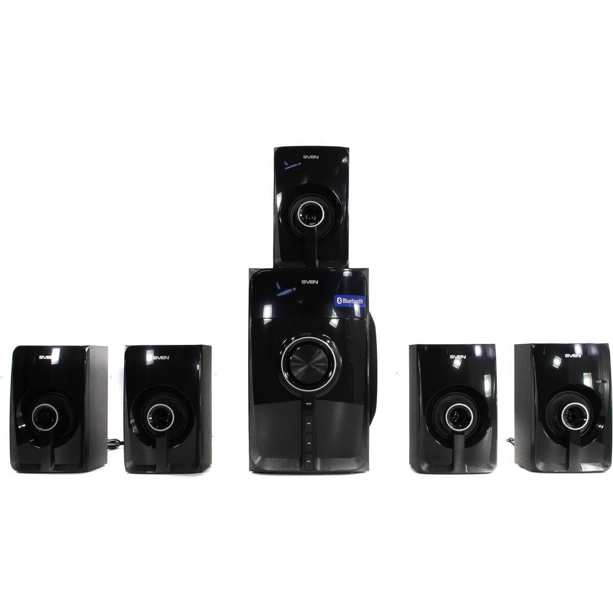 SVEN HT-202, черный, акустическая система 5.1 (мощность (RMS):20Вт+5x16Вт, Bluetooth, FM-тюнер, USB/SD, дисплей, пульт ДУ)