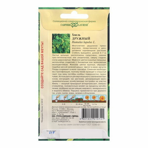 Гавриш Семена цветов Хмель "Дружный", 0,1 г