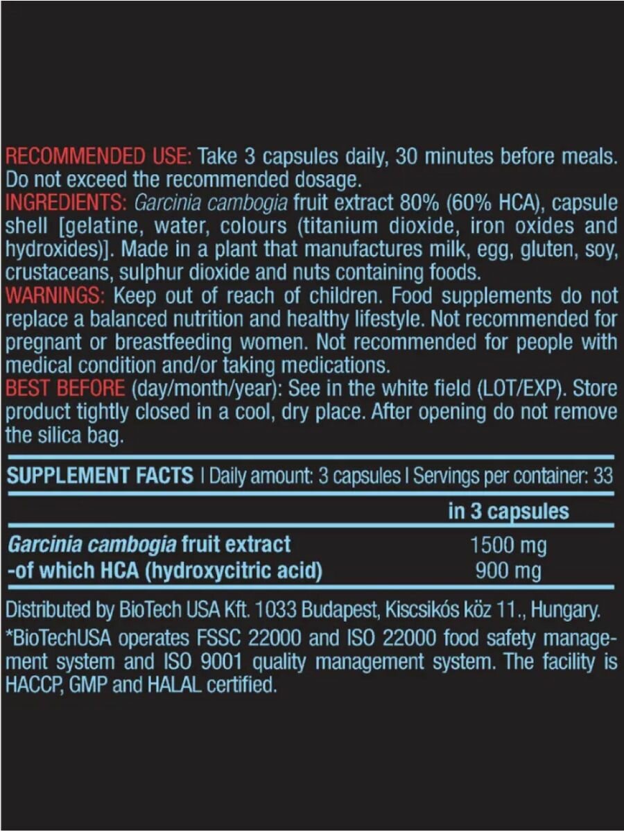 Стимуляторы похудения BioTech USA HCA (100 капсул) , Венгрия