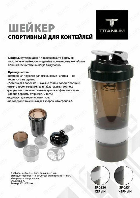 Шейкер 0,5 л, TITANIUM, черный SF 0531 BRADEX